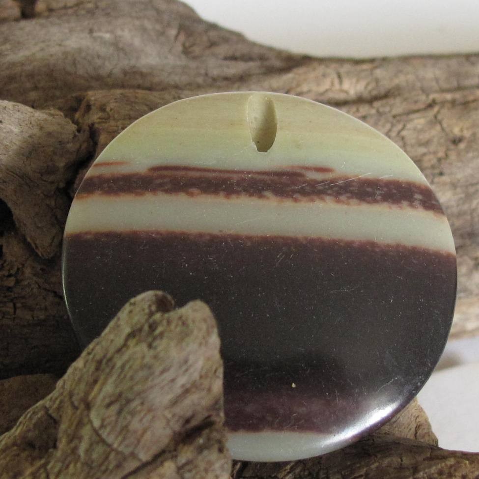 Dieser Edelstein Disc Anhänger eignet sich sehr gut als Schmuckstück. Leider gibt es von dieser Form nur noch wenige Exemplare. Da wir nicht jede Cappuccino Jaspis Disc fotographieren, kann es zu Farbabweichungen kommen.