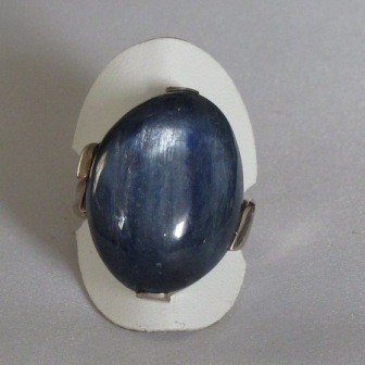 Der Kyanit ist ein wunderschöner dunkelblauer Edelstein. Mit der schlichten 925 Silber Fassung durch den schweizer Designer kommt der Kyanit richtig zur Geltung. Der Stein ist 2,5cm lang und 1,8cm breit.