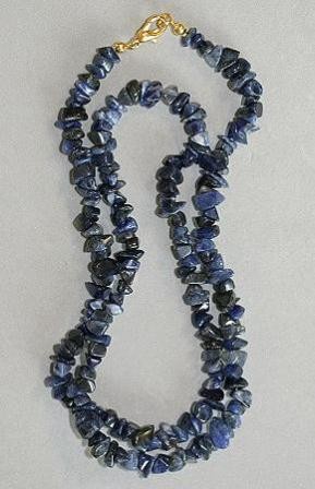 Allgemeines: Der Sodalith ist ein intensiv blaues Alumosilicat, das durchscheinend bis undurchsichtig ist, teilweise mit kleinen Adern aus Kalk durchsetzt. Sein Name kommt aus dem engl. Natrium = Sodium, wegen seines Natriumgehalts.