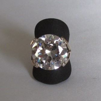 Der Zirkon hat einen Fazzettenschliff und wirkt dadurch wie ein grosser geschliffener Diamant. Diesen Zirkon Fingerring führen wir in der Grösse 55. Der Zirkon ist 20mm rund.